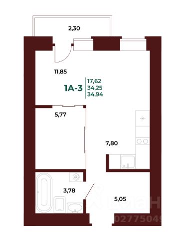 Продаётся 1-комнатная квартира в строящемся доме (2 этап), срок сдачи: IV-кв. 2027, общей площадью 34.87 кв.м., на 9 этаже. Новый жилой комплекс "АРБЕРИ" от застройщика "ГК Автор" расположен по адресу Пенза, проспект Строителей.