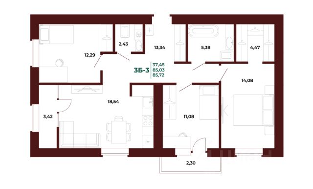 Продаётся 3-комнатная квартира в строящемся доме (1 этап), срок сдачи: III-кв. 2027, общей площадью 87.66 кв.м., на 3 этаже. Новый жилой комплекс "АРБЕРИ" от застройщика "ГК Автор" расположен по адресу Пенза, проспект Строителей.