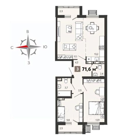 Продаётся 3-комнатная квартира в строящемся доме (дом 3-1), срок сдачи: II-кв. 2026, общей площадью 72 кв.м., на 4 этаже. ЖК "Новелла" имеет выгодное расположение: парки, скверы, роллердром, широкий выбор магазинов - все в шаговой доступности.Во дворе "Новеллы" запланированы современные игровые комплексы с безопасным покрытием и шумозащитный экран по периметру - для сохранения вашего спокойствия. Поэтому "Новелла" - воплощение мечты людей, которые ежедневно ищут варианты жилья доступного, но при этом комфортного и не удаленного от городских мест притяжения.ЖК "Новелла" с точки зрения планировок - это сочетание традиций и инноваций: можно подобрать квартиру классической планировки, а можно выбрать, например, с окном в санузле или большой кухней-гостиной, из которой можно попасть во все другие комнаты.В вашей истории должно быть красивое жилье и безопасный двор для спокойного отдыха. Жилой комплекс "Новелла" - новая история вашей жизни.