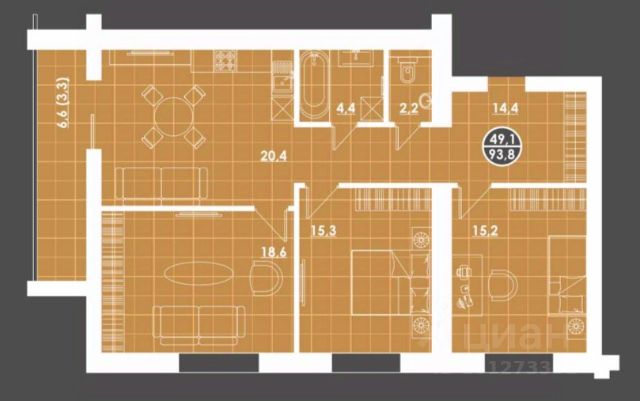 ✓  Цена за м²: 110,5 тыс. ₽/м²