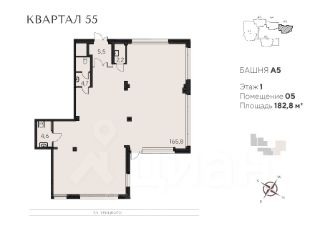 Продается торговая площадь свободного назначения площадью 182,8 кв.м.в жилом комплексе бизнес-класса "Квартaл 55".