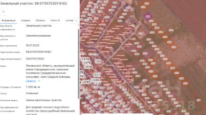 Земельный участок, государственная собственность на который не разграничена, свободный от прав третьих лиц, площадью 1300 (одна тысяча триста) кв. м., из категории земель — земли населенных пунктов, с кадастровым номером 58:07...