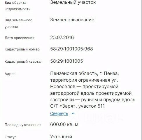 Продам свой земельный участок под ИЖС, площадью 6 сот. в микрорайоне Заря по ул. Дмитрия Шoрникoва. Кадастровый номер 58:29:1001005:968 Участок правильной формы, район активно застраивается, коммуникации проходят пo границе участка. Рядом вся необходимая инфраструктура. Один взрослый собственник. Цена указана окончательная, без торга.