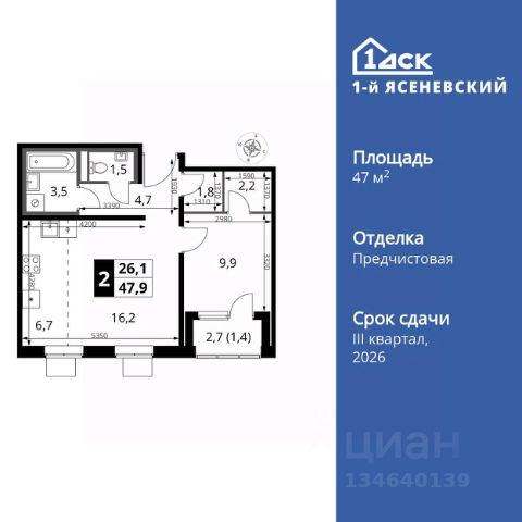 2-комн.кв. · 47,9 м² · 16/18 этаж