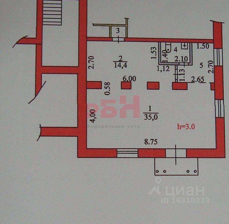 - высота потолков 3 метра;