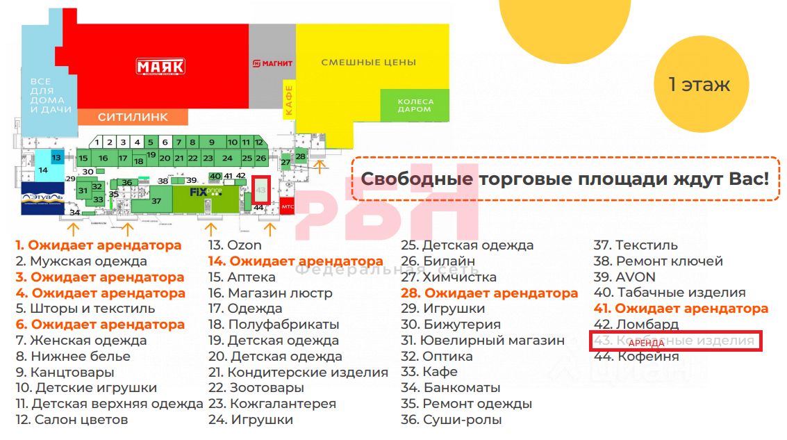 На 2 этаже расположен кинотеатр Глобал-кино, фитнес клуб, магазины, салон красоты, генерирующие поток клиентов и покупателей, что создаст дополнительный приток к вашему магазину.