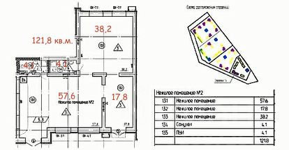 - Общая площадь помещения 121,8 кв.м. (можем увеличить до 202,4кв.м. в фото планировка).