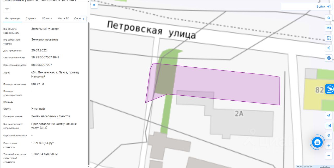 Адрес: обл. Пензенская, г. Пенза, проезд Нагорный. Площадь: 981 кв. м. Кадастровый номер: 58:29:3007007:1641. Разрешенное использование (назначение): Предоставление коммунальных услуг (3.1.1).
