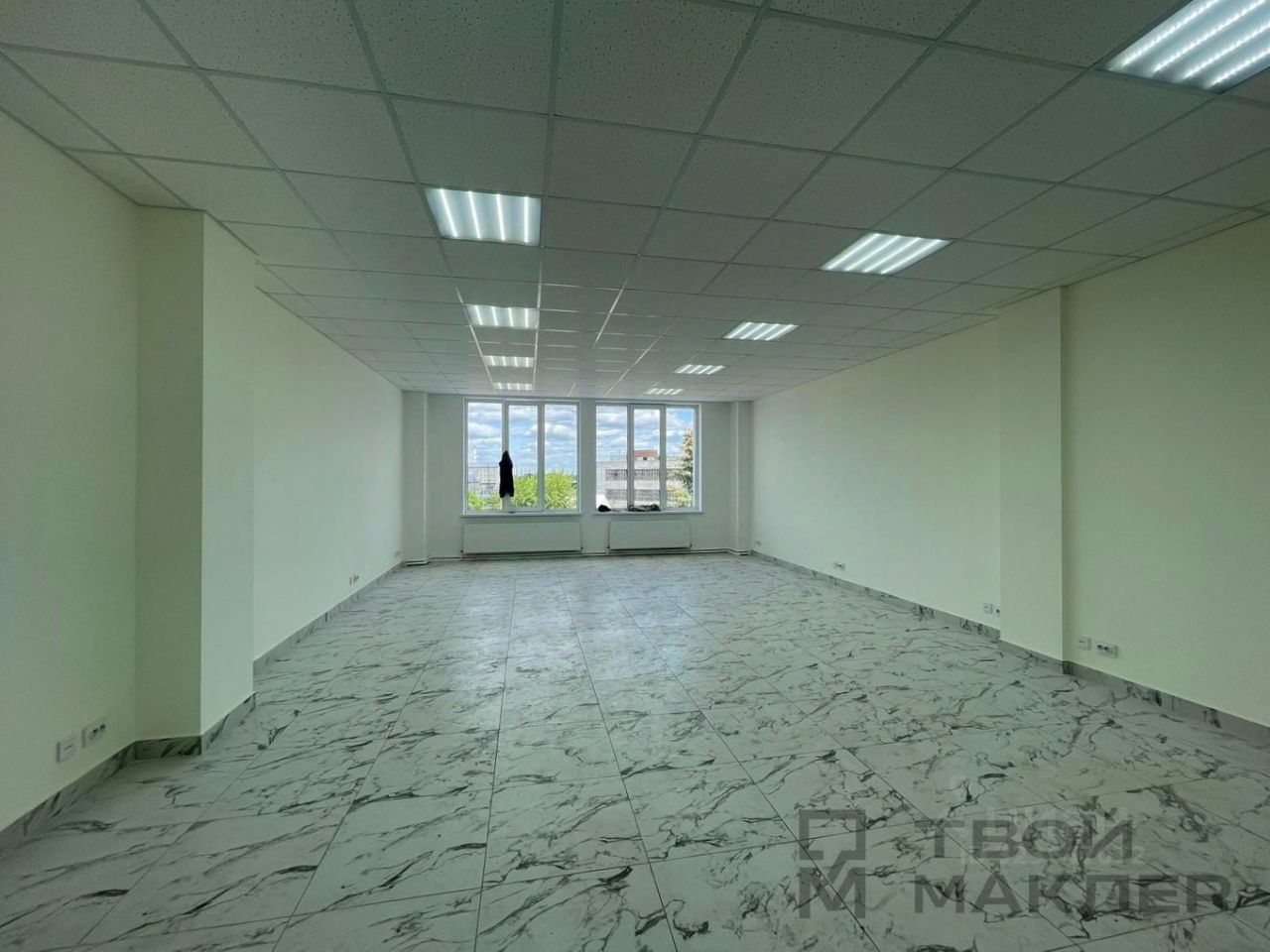 Ремонт качественный, классический, офисный: на полу керамогранит, стены выровнены и окрашены, потолок типа армстронг со светодиодным освещением. 2 отдельных с/у на этаже.