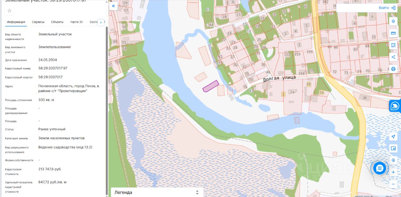Адрес: Пензенская область, город Пенза, в районе с/т "Проектировщик". Площадь: 330 кв. м. Кадастровый номер: 58:29:2007017:97. Разрешенное использование (назначение): Ведение садоводства (код 13.2).