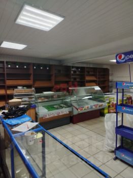 Здание продуктового магазина площадью 80 кв. м. расположено на 1 линии большой улицы. Отопление - газовый котел.