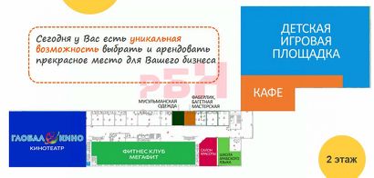 Рядом расположен кинотеатр Глобал-кино, фитнес клуб, магазины, салон красоты, генерирующие поток клиентов и покупателей, который будет направлен и в ваш магазин.