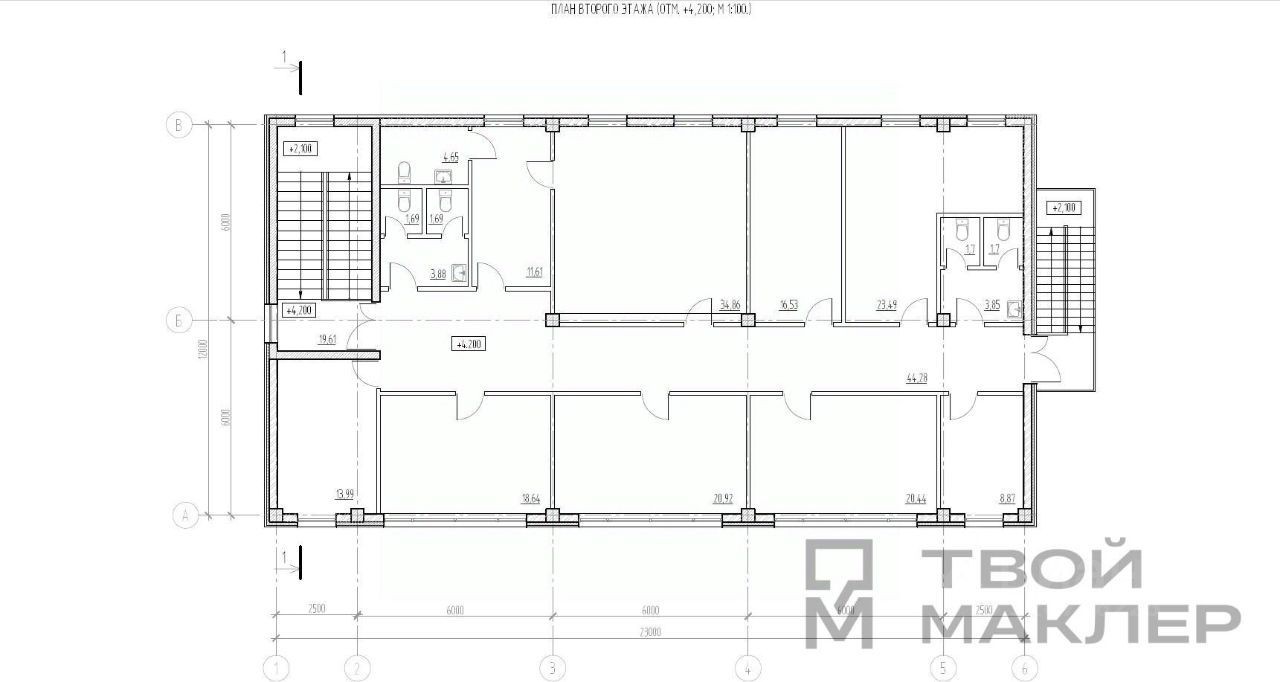 Планировка на 1 этаже открытого типа, на втором этаже - кабинетная, с площадью от 11 до 35кв.м.