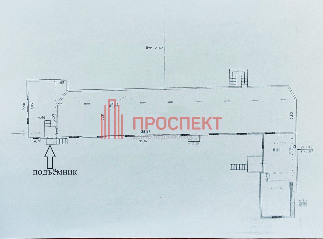 Производственно-складское помещение площадь 333кв.м. Производственный цех размер 38,3 м.Х 5,3м. Высота потолка 2,8 метра. Свободная планировка (отсутствие перегородок). Пол — бетон.