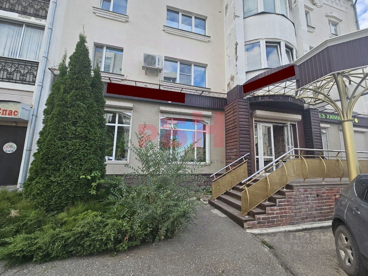 - витринные окна, защищены рольставнями;