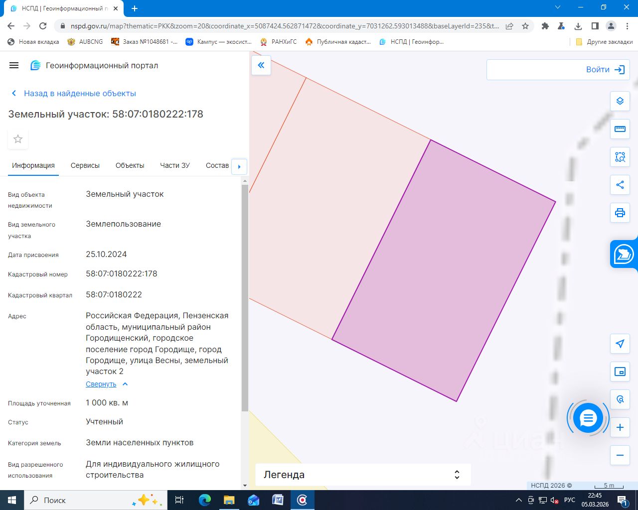 Лот 3: земельный участок, государственная собственность на который не разграничена, свободный от прав третьих лиц, площадью 1000 (одна тысяча) кв.м., из категории земель - земли населенных пунктов, с кадастровым номером 58:07:0180222:178, местоположение: Российская Федерация, Пензенская область, муниципальный район Городищенский, городское поселение город Городище, г Городище, ул Весны, з/у 2, разрешенное использование земельного участка для индивидуального жилищного строительства. На срок 20 (двадцать) лет.