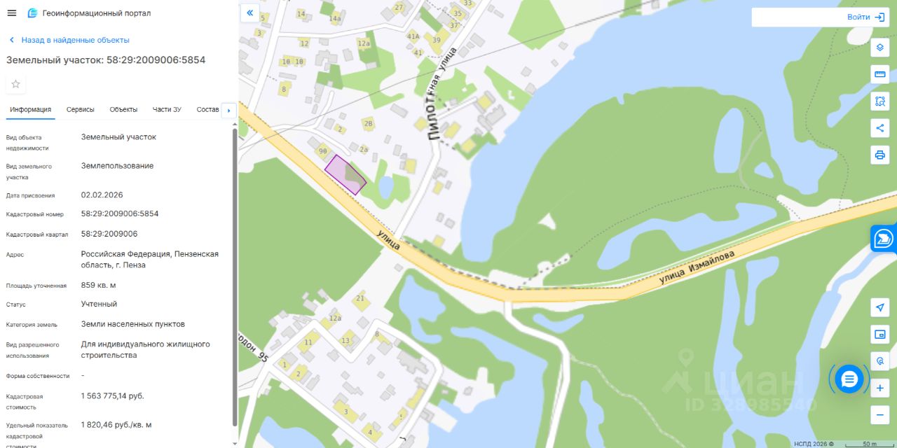 Адрес: Российская Федерация, Пензенская область, г. Пенза. Площадь: 859 кв. м. Кадастровый номер: 58:29:2009006:5854. Разрешенное использование (назначение): Для индивидуального жилищного строительства.