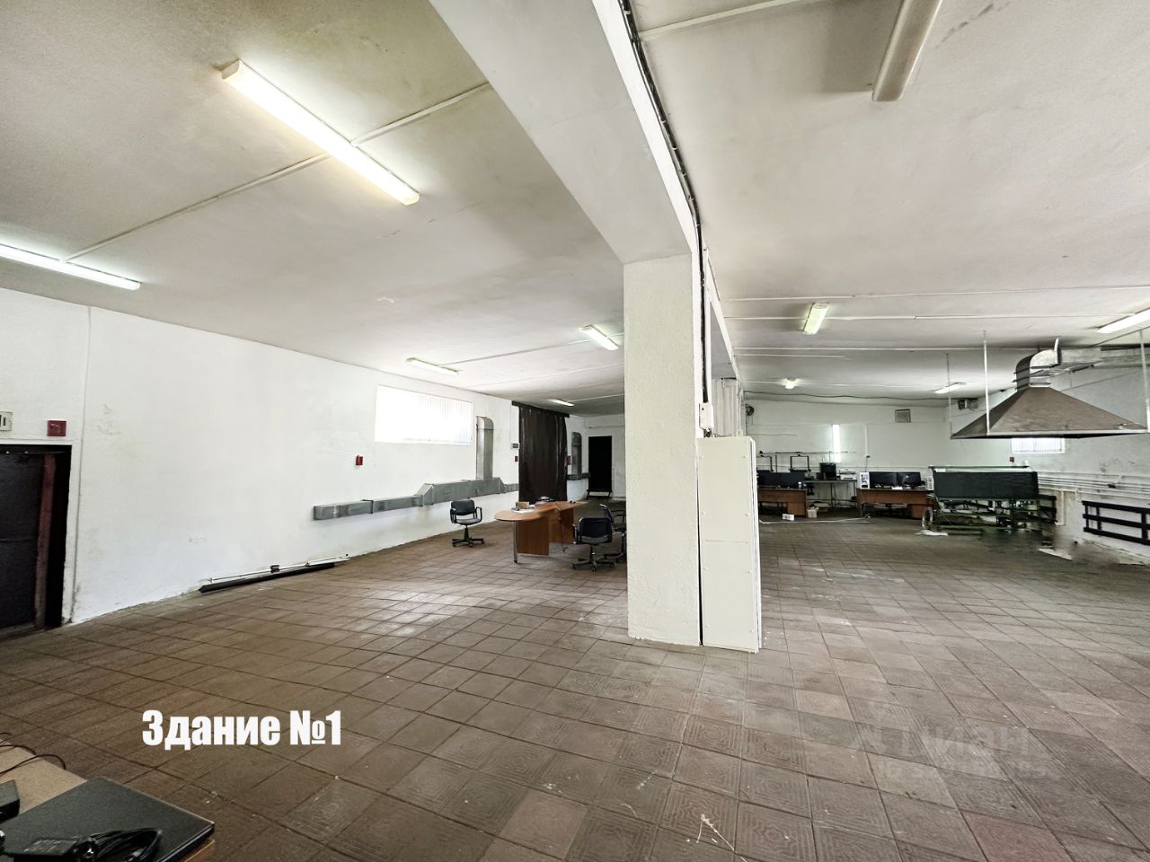 Площадь Здания 1: 410 кв. м., здание разделено на основное помещение 200 кв.м + дополнительное 140 кв.м + кабинеты 70 кв.м (Душевая, столовая, кабинет руководителя).