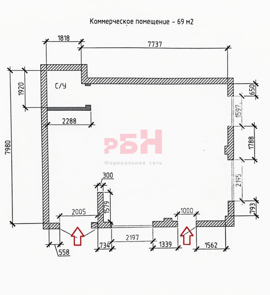 Просторная планировка даёт возможность воплотить любые дизайнерские решения и оптимально разместить торговое оборудование.