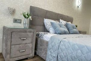 просторная двуспальная кровать с ортопедическим матрасом 160 на 200