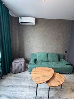Дизайнерский ремонт квартиры, удобная двухспальная кровать с мягким изголовьем, просторная стильная кухня, в которой располагается диван и зона приготовления еды, в санузле расположена душевая кабина, стиральная машина и огромное зеркало, срабатывающее от движений. Хорошая звукоизоляция квартиры обеспечит тишину.