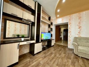Просторная 1 комнатная квартира в самом центре города по ул. Пушкина 45 . Элитный дом с огороженной территорией! Красивый панорамный вид на город! Размещение до 4х человек!
