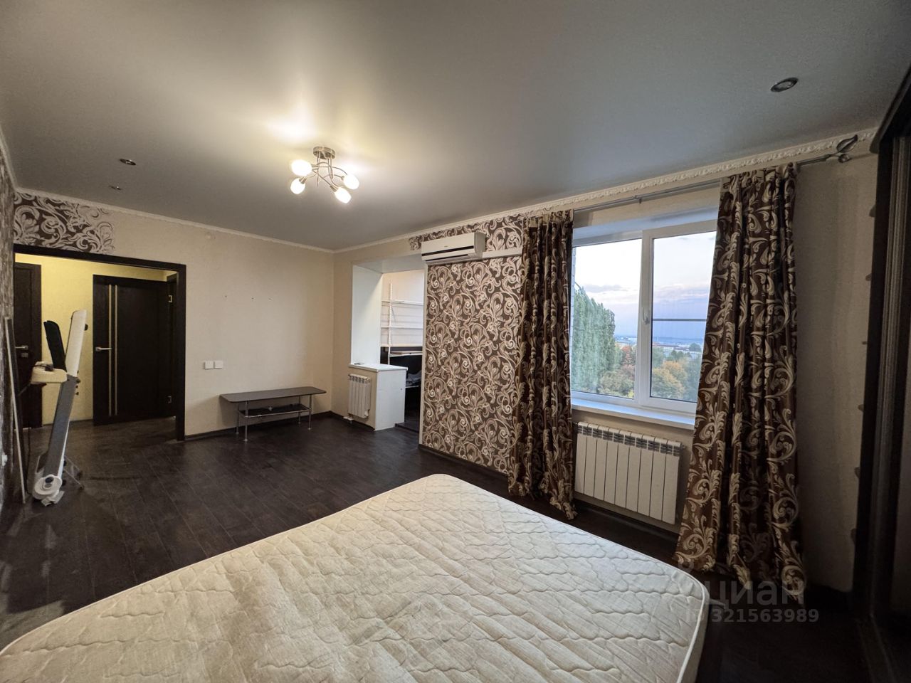 В спальне двусторонний двуспальный матрас и кровать .