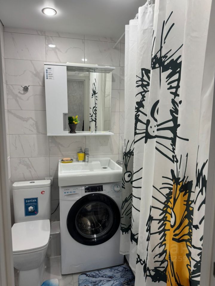• Санузел совмещенный, отделан плиткой. Стиральная машина.