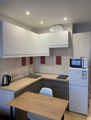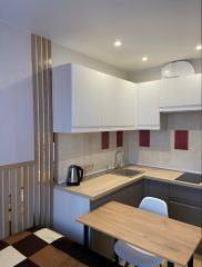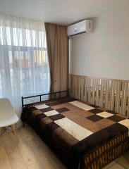 Новая чистейшая студия (новый ремонт) на 2 человека. Кондиционер, Свч, смарт-тв, вся техника для комфорта. Комплект белья, полотенца, гигиенические принадлежности, фен, утюг. Заезд на территорию за шлагбаумом (места всегда есть) с 7 до 22ч.