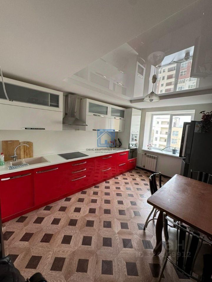 Большая кухня 10 кв.м. с современным кухонным гарнитуром, варочной панелью,духовым шкафом,микроволновой печью,холодильником и обеденным столом.