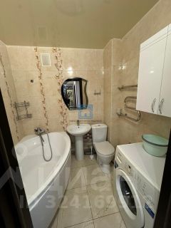 Совмещенный санузел в современном кафеле и качественной сантехникой.