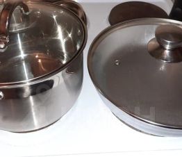 - Современные кастрюли из нержавеющей стали и сковороды;