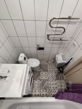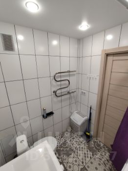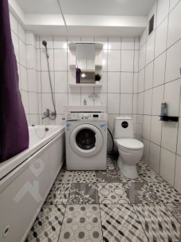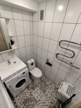 • санузел совмещённый, в современной плитке , установлена стиральная машина.