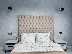 Одна двуспальная кровать.