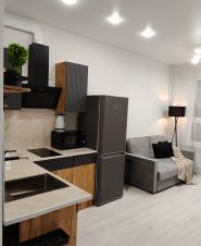 Всё необходимое для комфортной жизни со дня переезда под рукой: варочная панель, микроволновка, вытяжка (подключенная к вентиляции, не бутафория), чайник, холодильник,стиральная машина, и вместительные шкафы для вещей. Лоджия может использоваться как место отдыха и хранения.