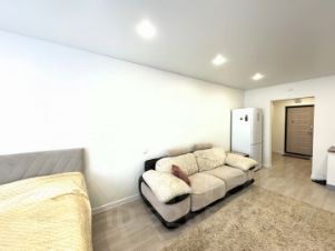 В квартире выполнен хороший евроремонт, выровненные потолки и стены, вставлены пластиковые окна, электроразводка проведена, пол ламинат, в санузле кафель, дверь входная металлическая. Не угловая.