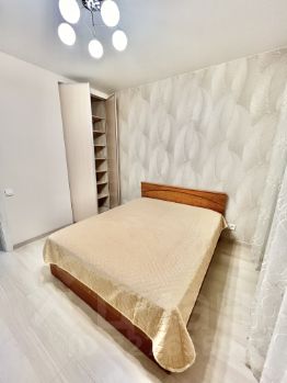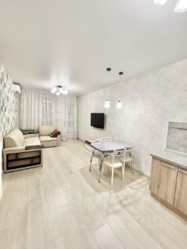 В квартире 2 спальни, большая кухня гостиная площадью 22 кв.м, 2 санузла, застеленная лоджия. Есть система защиты от протечки воды.