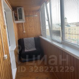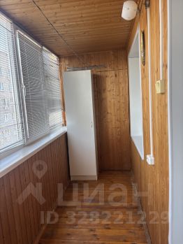 Лоджия просторная, застекленная, обшита деревом, встроенный шкаф и раскладывающееся кресло-кровать.