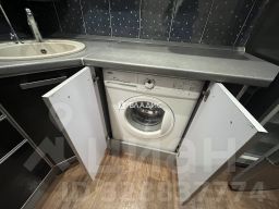 В квартире есть все для комфортного проживания: спальное место, шкаф, кухонный гарнитур, холодильник, стиральная машина.