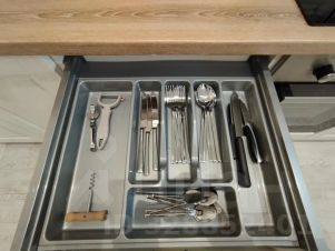 Большая двуспальная кровать с удобным ортопедическим матрасом, smart tv, кондиционер, wi-fi, большой обеденный стол со стульями, свч-печь, холодильник, посуда, стиральная машина-автомат, шампунь, гель для душа, утюг, фен, гладильная доска, сушилка для белья.