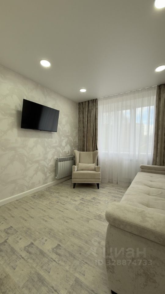 В квартире сделан современный евроремонт, она полностью меблирована. На просторной кухне есть вся необходимая техника: холодильник, посудомоечная машина, а также мебель для комфортного приготовления и приёма пищи. В комнате установлены кондиционер и телевизор. Санузел совмещённый, оборудован ванной. Также имеется стиральная машина. В квартире есть балкон, где можно наслаждаться свежим воздухом.