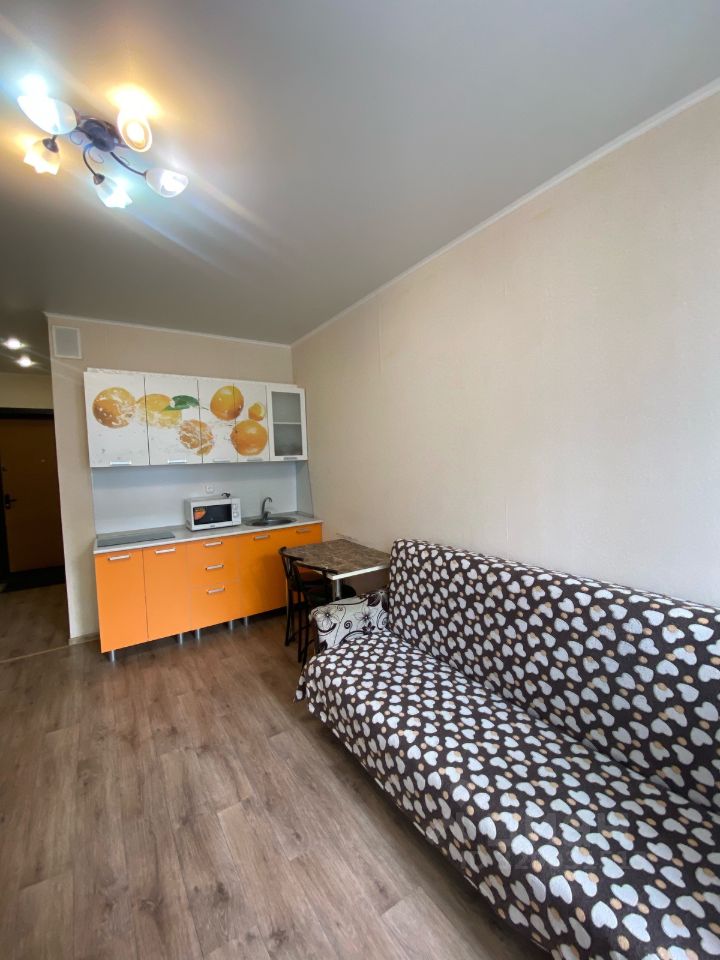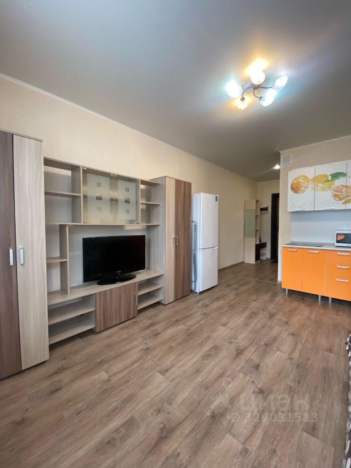 В квартире сделан евроремонт, который создает атмосферу уюта и современности. Пространство студии грамотно организовано: здесь есть все необходимое для комфортного проживания. Кухня оборудована мебелью и техникой — холодильник, стиральная машина и телевизор. Ванная комната оснащена полноценной ванной, что добавляет дополнительное удобство.