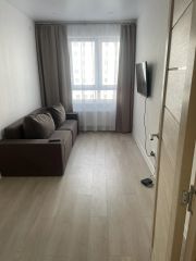 В квартире выполнен современный евроремонт. Просторная комната и кухня полностью меблированы, что позволит вам сразу же почувствовать себя как дома. Из техники в наличии: холодильник, телевизор и стиральная машина. Санузел совмещённый, оборудован ванной.