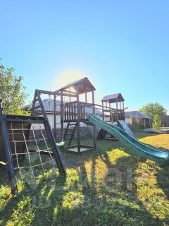 на благоустроенной территории с подсветкой (20 соток), есть гриль-домик с мангалом и принадлежностями ,просторная беседка, детская площадка, игровая лужайка и парковка.