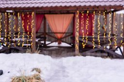 В теплый период года на территории комплекса функционирует большой уличный плавательный бассейн 10м*6м с шезлонгами и облагороженной территорией(оплачивается отдельно). На благоустроенной территории с подсветкой (20 соток), есть гриль-домик с мангалом и принадлежностями ,просторная беседка, детская площадка, игровая лужайка и парковка.
