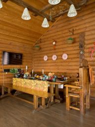 О доме : 8 спальных мест; вместимость 2-25 человек, площадь - 100 кв.м.; просторная трапезная; кухня с бытовой техникой (холодильник, СВЧ, чайник, плита индукционная по запросу, вся необходимая посуда и принадлежности для мангала); комната отдыха с удивительным интерьером; чистейший подогреваемый бассейн (3*4кв.м.) с современной системой фильтрации; русская парная на дровах с вениками; кондиционер; массажное кресло; караоке, цветомузыка; большая плазма, спутниковое ТV, WI FI, домашний кинотеатр, музыкальная аппаратура; система теплый пол. На огороженной прилегающей территории: просторная срубовая беседка на большую компанию; оборудованная зона барбекю, мангал; современная детская площадка; игровая лужайка; охраняемая парковка.