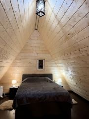 Коттедж 120 м² на участке 10 сот. Удача Вместимость коттеджа: до 12 гостей / 2 этажа. Зона для барбекю на территории коттеджа, с чаном и сауной.