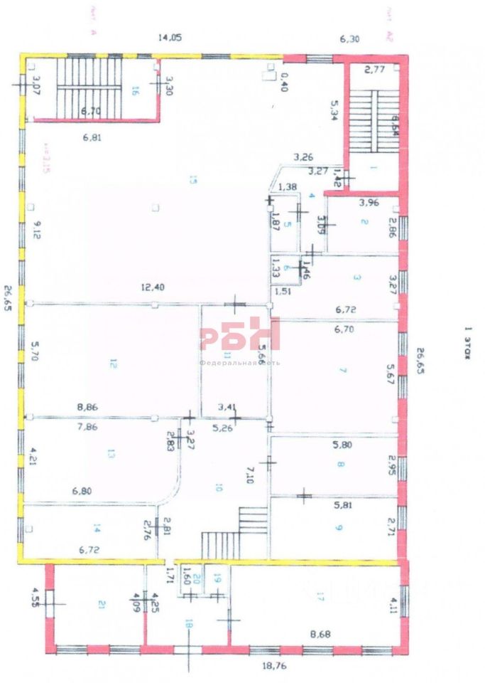 Общая площадь этажа 1541кв.м. 2 основный входные группы, 2 запасный выхода. Отсутствие несущих стен даёт возможность убрать практически все перегородки и сделать просторные кабинеты. Адрес: г. Пенза, ул. Володарского, д. 9.