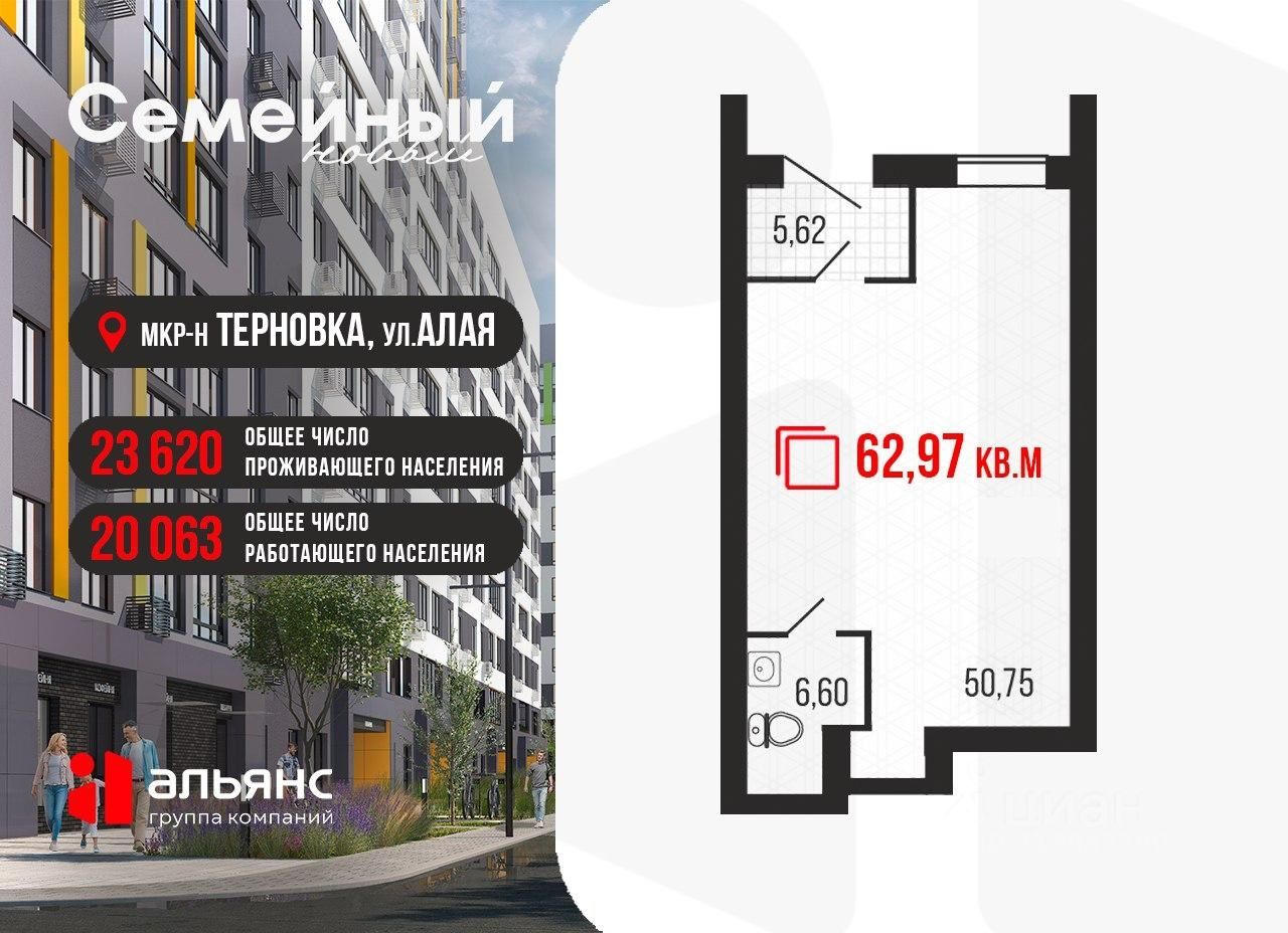 Общая площадь 62,97 кв.м.