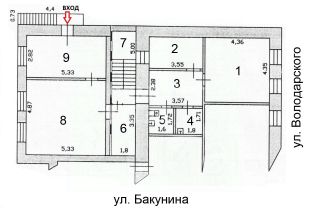 - три отдельных входа со двора на 1 этаж, на 2 этаж, также отдельный вход в подвал;